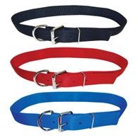Neck strap for bulls is made of 1-3/4" double-thick nylon web with heavy nickel plated buckle and ring.
