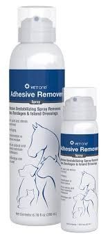 VetOne Adhesive Remover Spray can be used to minimize trauma to the patient and the wound. The adhesive remover spray can be used to assist in the removal and replacement of aging, dirty, wet, and torn bandages and tapes where no clear starting point for removal is visible. VetOne Adhesive Remover Spray is suitable for use on catheter securing tapes when checking IV catheter placement. The spray is harmless to the animal as it completely evaporates, allowing for a replacement bandage or tape to be reapplied.