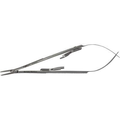 PivetalŪ Castroviejo Needle Holders are designed with a spring and latch mechanism, creating a small, pencil-like grip for microvascular procedures.