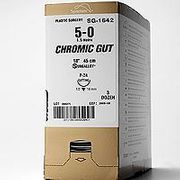 An absorbable, sterile surgical suture composed of purified connective tissue (mostly collagen) derived from either the serosal layer of beef (bovine) or the submucosal fibrous layer of sheep (ovine) intestines. Surgical gut sutures are available in plain or chromic. Chromic gut is processed to proved greater resistance to absorption. Surgical gut is packaged in tubing fluid. Blue dyed chromic gut suture is also available. Surgical gut suture meets all requirements established by the U.S. Pharmacopeia (U.S.P) for absorbable surgical sutures.