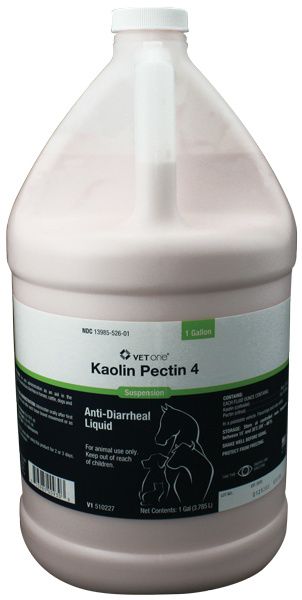 A time-tested oral formula for use as an aid in the treatment of noninfectious diarrhea in horses, cattle, dogs and cats. Combines pectin with kaolin (also known as china clay) in a palatable flavored vehicle. Each fluid ounce (2 tablespoonfuls) contains 90 gr. Kaolin and 4 gr. Pectin.