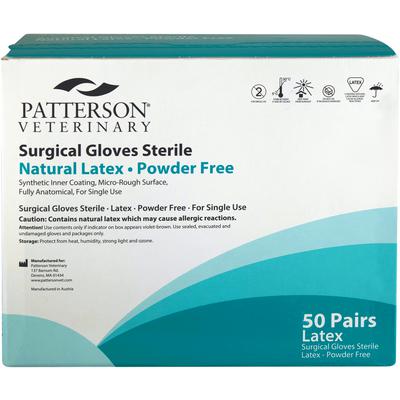 Patterson® Veterinary PF Latex Sterile Surgical Gloves, 50 pairs per box.