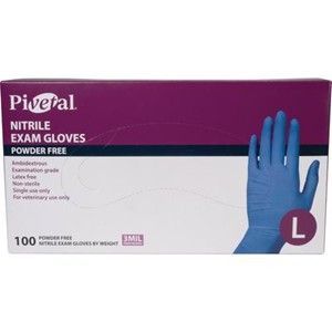 PivetalŪ nitrile exam gloves are ambidextrous blue nitrile examination gloves with beaded cuff and textured fingers provide long-lasting comfort. Powder free and latex free, these gloves are a convenient alternative for anyone with skin sensitivities.