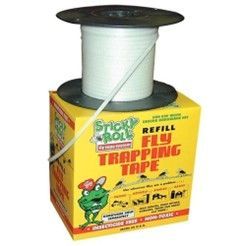 Sticky Roll is a reel-to-reel system of sticky tape that really catches flies! When flies first hatch after feeding or when the weather cools they tend to congregate overhead where they are caught on the roll. Once entrapped they produce stress chemicals which are irresistible attractants to other flies. Eventually the tape is completely black with trapped flies.