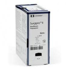 SURGIPRO™ sutures (clear or pigmented) are inert, nonabsorbable, sterile sutures composed of an isotactic, crystalline stereoisomer of polypropylene and contain polyethylene. The suture is pigmented blue to enhance visibility. The advanced extrusion process of the polypropylene molecule gives the suture: Uniform diameter; Maximum flexibility of the strand; Excellent security with snug and flattened knots; Minimal memory and reduced "pig-tailing"; Consistent knotting strength. Indicated for use in general soft tissue approximation and/or ligation, including use in cardiovascular, ophthalmic and neurological surgery.
