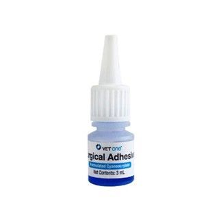 VetOne Surgical Tissue Adhesive contains purified n-Butyl Cyanoacrylate with a D&C certified dye that allows for differentiation between the product and bodily fluid, but it dries clear for a clean appearance. It sets up quickly (5-15 seconds) to form a thin, flexible waterproof bandage that is sloughed naturally in 5-7 days. Disposable applicator tips (included) fit snugly into the tip on the bottle and allow greater control over the drop size and placement of the product. For topical application only. Not intended for internal closures or for use on infected or deep puncture wounds.