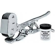 STANDARD MODEL: Features digits 0-9 with 2 blanks. Includes pliers and 3 oz. green ink jar.