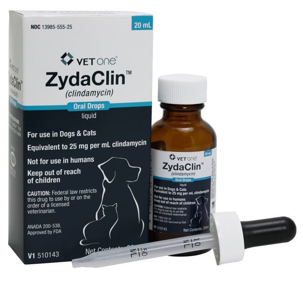 ZydaClin Oral Drops liquid (for use in dogs and cats) is a palatable formulation intended for oral administration of clindamycin. Each mL of ZydaClin Oral Drops liquid contains clindamycin hydrochloride equivalent to 25 mg clindamycin; and ethyl alcohol, 8.64%. ZydaClin Oral Drops liquid is non-refrigerated and highly effective, with multiple indications for both dogs and cats. Effective in the treatment of various tissue infections, dental infections and osteomyelitis. It is generally well tolerated by the animal and presented in a ready-to-use vial with included dropper for accurate, safe administration.